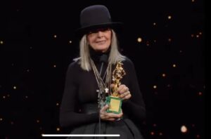 «Diane Keaton, probabilmente la persona più coperta nella storia dell’abbigliamento, è anche una donna trasparente. Non c’è nessuno che sia più esposto, più indifeso e disposto a mostrarsi dentro e fuori di Diane» così la Streep ricorda l’attrice scomparsa riportando alla mente un prezioso ricordo d’infanzia. Proseguiva raccontando di essersi innamorata di lei più o meno come tutti si erano innamorati di Io e Annie, perché, a suo dire, aveva il flusso di coscienza di un colibrì. «È in volo, e quando atterra ti ferma il cuore- conclude– ci ha dato a tutti così tanta felicità».
